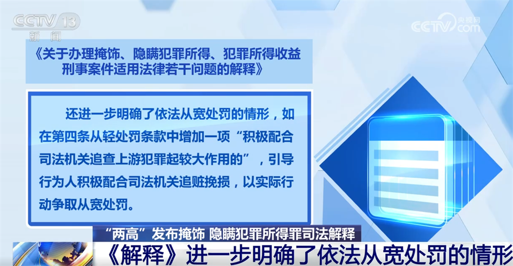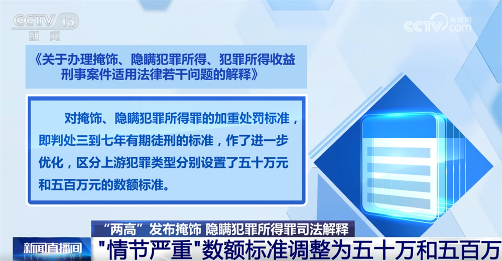 央视网消息:8月25日,最高人民法院、最高人民检察院共同发布《关于办理掩饰、隐瞒犯罪所得、犯罪所得收益刑事案件适用法律若干问题的解释》。据了解,掩饰、隐瞒犯罪所得罪是实践中案件数量最大的洗钱类犯罪,也是与电信网络诈骗、网络赌博等犯罪密切关联的下游犯罪。《解释》主要内容有哪些?和以前相比有哪些变化?来看记者的采访。